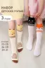 Яркие гольфы для девочек. По всей поверхности вывязан узор, сверху - мордочки животных с ушками. В упаковке 3 пары - по 1 паре каждого вида