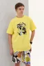 Футболка для мальчика классического прямого кроя. В зависимости от фигуры и приобретённого размера она может выглядеть как оверсайз. В комплекте с шортами арт. 1578 получается молодёжный летний костюм, который будет уместен в абсолютно любой ситуации. В нём можно пойти на практику в школу, на тренировку в спортзал, на утреннюю пробежку или вечерний кроссфит. Отличное решение для поездки на море или просто в южные регионы. Футболка неотъемлемая часть гардероба всех мальчиков и девочек, юношей и девушек, мужчин и женщин. В составе ткани подростковой футболки преобладает хлопок, который делает ношение этой модели комфортным на протяжении всего года. Добавленный эластан придаёт натуральным нитям ткани упругие свойства, а также делает её поверхность гладкой и шелковистой. Полотно с эластаном способно увеличиваться в размере в несколько раз без потери своей формы. В коллекции представлены футболки в двух цветах: черный – лаконичный, строгий, серьёзный; бежевый – мягкий, спокойный, умиротворяющий. Приобретая сразу два цвета, вы получаете разные образы и, конечно, настроение, а это бывает так важно в подростковом возрасте выразить через одежду своё личное отношение к миру! Особой острой индивидуальности совсем не детской футболке придают принты, выполненные высококачественными красками, которые остаются в первоначальном виде даже после многократных стирок. Немаловажная деталь, что рисунки напрямую перекликаются с шортами, которые мы предлагаем в комплект футболкам, при этом выглядят абсолютно самодостаточно, поэтому наши футболки можно легко комплектовать с любыми джинсами, брюками, спортивными трико, домашними бермудами, шортами любой длины. Экспериментируйте с образами совместно с брендом Modestreet!