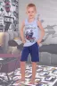 Летний костюм для мальчика с удлинёнными шортами свободного кроя. Притачной пояс со шнурками. Майка с современным принтом - мотоцикл. В размерах 30-32 горловина и проймы обработаны бейкой, а в 34-38 - плоским швом. В боковых швах глубокие внутренние карманы. Верхний срез кармана соединён с поясом, поэтому нет лишних строчек.