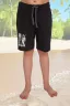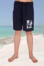 Шорты из футера с лайкрой для мальчиков. Пояс на резинке со шнурком, принт в виде надписи, по бокам карманы, общая длина приблизительно до коленей. Края изделия не обработаны. Четыре расцветки — синяя, антрацитовая, фумэ и серый меланж. Размеры от 32 до 40. Есть возможность розничного заказа товара.