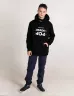 Толстовка из тёплого футера с карманом "Кенгуру" и капюшоном с балаклавой, трансформирующейся в удобную стойку. Полочка декорирована контрастной печатью.