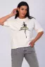 Футболка женская из кулирки с лайкрой высокого качества пенье. Модель свободного кроя, горловина круглая обработана обтачкой, цельнокроеный рукав длиной до локтя, низ спинки и рукав обработаны широким манжетом. Стильный принт, комфортная футболка придаст вашему образу индивидуальность и неповторимость, скроет недостатки и подчеркнёт достоинства фигуры. Длина рукава в таблице измерений указана от начала плечевого шва.