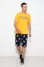 Костюм мужской с тематическим принтом на шортах и крупным буквенным принтом на полочке футболки, футболка с коротким рукавом, шорты с боковыми карманами и комфортным широким поясом.