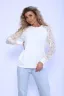 Джемпер женский, рукав реглан выполнен из гипюра, на рукаве манжет, джемпер на поясе. Подойдет как и на каждый день, так и на праздник . Большой размерный ряд от 44 до 60 размера. По спинке допустим шов. На модели 46 размер.
