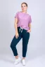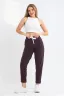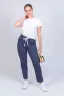 Женские брюки прямого кроя, внизу декоративный шов, пояс на резинке с регулируемым шнурком. По бокам два кармана с отрезным бочком. Отлично подойдут для прогулок и для занятий спортом.