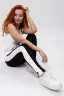 Леггинсы облегающие, длинные, с завышенным уровнем талии, сверху на широком эластичном поясе. Вдоль боковых швов расположены контрастные вставки.