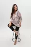 Туника женская со спущенным цельнокроеным рукавом длиной 3/4 выполнена из вискозы красивой, нежной расцветки. Горловина туники имеет V-образный вырез, обработана планкой, низ изделия немного расклешен. Ткань хорошего качества, при стирке не линяет, не дает усадку, сохраняет форму.