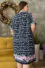 Халат женский прямого силуэта. Рукав цельнокроенный корокий. На полочке два накладных кармана. В боковых швах разрезы. Край борта, низ рукава, верх кармана обработаны широкой окантовкой. По низу халата купон розы, так же этот принт возможен на рукаве. На модели 52 размер