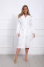 Халат женский вафельный выполнен из 100% хлопка. Плотность вафельного полотна - 240 гр/м2. Эта прочная плотная ткань обладает особой мягкостью благодаря своей структуре. Приятная к телу ткань быстро впитывает влагу, хорошо пропускает воздух, не оставляет лишних ворсинок и волосков на теле, не электризуется и не прилипает к телу. Впитывающие свойства ткани позволяют использовать вафельный халат как полотенце после душа или бани. Усадка после стирки не превышает 5% при соблюдении рекомендаций по уходу (бережная стирка при температуре не более 30 градусов, отжим в режиме не более 1000 оборотов, естественная сушка в расправленном виде). Халат не полиняет и надолго сохранит свой внешний вид. Модель халата: кимоно с воротником типа планка, длинными рукавами, накладными карманами, поясом. Фасон кимоно имеет свободный крой, отсутствуют какие-либо застежки, широкие рукава. Халат идеально сядет на любую женскую фигуру. Предназначение халата: для дома, бани, сауны, бассейна, spa-процедур. Товар сертифицирован и соответствует высоким стандартам качества товаров, соприкасаемых с телом.
