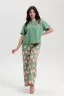 Замечательная домашняя одежда! Материал мягкий и приятный, брюки в стиле палаццо выглядят стильно и удобно. Особенно понравился цвет суши-роллы/васаби. Очень рекомендую!