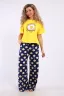 Красивый женский костюм двойка от ивановского производителя состоит из футболки и брюк в стиле палаццо. Этот стильный домашний комплект выполнен из мягкого и приятного на ощупь трикотажного материала из 100% хлопка. Он идеально подойдет для осеннего и весеннего сезонов. Эта женская пижама с брюками кюлотами сочетает женственность и удобство. Отличный выбор для повседневного использования дома и сна. Брюки клеш придают образу особый шарм и делают костюм популярным среди молодежи и подростков. Благодаря широким брюкам, пижама выглядит модно и трендово. Этот ночной комплект предлагается в нескольких размерах, включая большие размеры, и подходит стройным девушкам и женщинам, а также полным дамам plus size. Благодаря свободному крою и удобным брюкам трубам, он также идеально подойдет для беременных женщин, давая им свободу движения и комфорт в домашних условиях. Хлопковая пижама изготовлена из качественного турецкого трикотажа (кулирка), который приятен к телу и обеспечивает комфорт во время ночного отдыха. Она подойдет для любого времени года, особенно на осень, весну, зиму. Этот удобный и стильный комплект пижамы с брюками станет отличным выбором для роддома, повседневного отдыха дома или даже для новогодней фотосессии и пижамной вечеринки. Сочетание комфорта, красоты и функциональности делает эту пижаму невероятно привлекательной. Домашний костюм, пижама - это прекрасный подарок себе, маме, сестре, бабушке, жене на новый год, день рождения или без повода.
