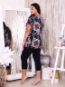 Костюм женский состоит из бриджей и кофты. Бриджи с притачной резинкой, низ изделия обработан швом в подгибку. Низ кофты обработан швом в подгибку с прокладыванием шнурка. По бокам два кармана. Входы в карман, горловина и рукава обработаны контрастной бейкой.