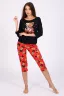 Женский молодежный костюм-пижама, состоящий из футболки с удлиненным втачным рукавом, округлой горловиной, отделанной обтачкой из ткани бридж и закругленным низом и бридж на резинке на талии шириной в 3 см. На груди печать в виде маленького медвежонка и надписи, на бриджах - принт по ткани также в виде медвежат. Пижама сшита из трикотажного полотна, 100% хлопок (кулирка). Удобная, мягкая, приятная к телу, не стесняет движения. Яркие, стойкие цвета ткани соответствуют модным тенденциям. Пижама - незаменимый предмет гардероба каждой женщины. Прекрасно подходит для сна и отдыха, а также для ношения, как домашний костюм, для пижамных вечеринок. Отличный подарок для девочек, юных девушек и женщин.