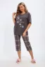 Женская домашняя одежда из 100 % хлопка (кулирная гладь) — комплект из футболки и бриджей, созданный для комфорта и уюта. Футболка украшена яркой печатью в технике шелкографии, которая не теряет вид после стирок. Бриджи выполнены в стильной клетчатой расцветке и оснащены удобными карманами в боковых швах — практичная деталь для повседневного использования. Материал отличается мягкостью, отличной воздухопроницаемостью и гипоаллергенностью, а свободный крой не сковывает движений. Комплект представлен в размерах 50–60, что позволяет подобрать подходящую модель для разных типов фигуры. Идеален для домашнего отдыха, но также может стать приятным подарком для близких. Практичность, качество и стильный дизайн в каждой детали!