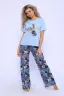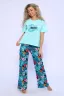 Женский домашний костюм - пижама, состоящий из футболки и брюк Листья из трикотажного полотна 100%-го хлопка. Приятный дышащий материал идеален для изготовления домашней одежды. Футболка свободного кроя, с круглой горловиной и втачным спущенным коротким рукавом, в которой будет одинаково приятно спать и заниматься домашними делами. Оригинальный, яркий принт обязательно поднимет настроение. Брюки прямого силуэта свободного кроя, с карманами в боковых швах. Мягкий удобный пояс на резинке не перекрутится, т.к отстрочен на поясной машине. Пижамка не изменит свой внешний вид после стирки при соблюдении рекомендаций по уходу и будет долго вас радовать. Обязательно возьмите этот костюм в отпуск. Отличный подарок для всех девушек и женщин на любой праздник! Параметры модели на фото: 165см, 90-65-98. Размер 44р.