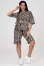 Костюм женский из кулирки. Костюм состоит из блузы и шорт. Блуза свободного покроя, рукав втачной, по низу изделия кулиса. Шорты на притачном поясе с карманами.