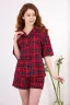 Костюм, состоящий из рубашки и шорт. Рубашка из лёгкого мягкого трикотажного полотна прямого силуэта, на пуговицах, отложной воротник, втачной рукав с манжетами, застёжка на пуговицах. Шорты свободного кроя с боковыми карманами. В притачной пояс вставлен шнурок, благодаря которому можно регулировать ширину пояса.