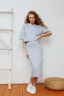 Костюм замечательный! Топ удобный, мягкий, приятно носить. С юбкой миди смотрится стильно и современно. Единственное, пояс немного сдавливает живот.