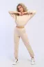 Костюм женский для повседневной носки. Данная модель выполнена из трикотажного полотна футер 2-х нитка. Толстовка свободного покроя с втачным рукавом. Манжеты на рукавах и горловина выполнены из эластичного трикотажного полотна кашкорсе. Пояс на толстовке и брюках выполнены из основной ткани под поясную машинку (отделочная тройная строчка). Брюки имеют по бокам карманы. По низу брюк вшита резинка 2,5 см.
