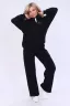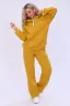 Костюм состоит из толстовки с капюшоном и брюк, из приятной мягкой ткани. Капюшон фиксируется шнуром. Пояс и рукав толстовки на манжете, на полочке вышивка. Брюки с карманами. Модель особенно удобна и комфортна в прохладное время года.