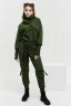 Удобный и стильный женский спортивный костюм. Состоит из свитшота и брюк-" джогеров". Толстовка и брюки оформлены функциональными, декоративными молниями. Толстовка с удобным воротником-стойкой, низ рукавов обработан высокой манжетой-перчаткойиз кашкорсе. Джогеры с высокой посадкой и широкой эластичной резинкой на поясе со шнурком. Низки брюк обработаны манжетами, что очень удобно при носке и отлично смотрятся с грубыми ботинками в стиле "челси". Спортивный костюм подходит как для зимних видов спорта, лыж, коньков, так и в холодную погоду осенью, весной. Расцветки "хаки" и "хаки с разрезом" отличаются отсутствием/наличием разреза на воротнике-стойке.