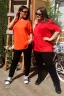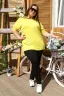 Костюм состоит из футболки и брюк. Футболка прямого силуэта, с округлой горловиной, с удлиненной спинкой, с разрезами в нижней части боковых швов. На полочке расположены вставки из отделочного полотна. Спинка с кокеткой. Рукав короткий, обработанный эластичным манжетом. Горловина обработана эластичной обтачкой. Брюки на поясе, с боковыми карманами. В верхней части передних половинок по шву притачивания пояса расположены складки. На моделях 48 и 52 размеры