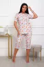 Пижама женская: футболка с короткими рукавами и бриджи. Лаконичный силуэт, максимальный комфорт без лишних деталей. Комфорт 100% хлопка. Цвет: ассорти (Внимание! Данный товар по цвету не подбирается, возможные варианты расцветок представлены на фото).