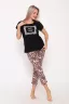 Яркая женская пижама. Футболка черного цвета с красивым принтом в виде леопардового квадрата, рукав короткий. Брюки в схожем окрасом леопарда. Пижама отлично подойдет как домашний костюм, так для отдыха и сна.