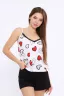 Пижама женская шорты и топ. Данная модель выполнена из трикотажного полотна кулирка (ХЛОПОК 100%). Топ с V-образным вырезом украшен эластичным кружевом. Шорты с поясом и карманами. Отличная модель для сна и отдыха.