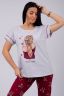 Пижама женская со штанами изготовлена из мягкой ткани (100 % хлопка), которая обладает дышащими и влаговпитывающими свойствами, идеально подходит для сна, обеспечивает максимальную практичность и воздухопроницаемость, облегчая сон даже в самые жаркие и холодные ночи. Женский домашний костюм состоит из стильной тонкой ночной футболки с коротким рукавом и легких брюк, которые создают комфортный домашний уют дома. Милая женская пижамка украшена стильным принтом. Пижама женская яркая и в тоже время нежная, идеальна для беременных, будущих мам или в роддом, ведь в этой пижаме для беременных удобно весь день. Носить можно в любое время года: осенью или даже зимой под согревающим одеялом.
