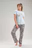 Пижама с брюками и футболкой. Футболка с втачным рукавом и декоративной, глянцевой печатью в стиле шелкографии. Брюки прямого силуэта на резинке с карманами.
