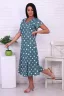 Платье из ткани кулирка расцветка "горох". Платье выполнено в легком стиле, с коротким рукавом, горловина V вырезом, в районе талии немного заужено, к низу умеренно расклёшено, что придает платью легкость и элегантность. Подойдет для прогулок, дома, и отдыха.