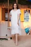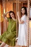 Платье женское, свободное, расширенное к низу, на подкладке. Рукав реглан, короткий. Горловина округлая, внизу платья широкая рюша, в боковых швах внутренние карманы.