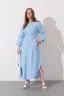 Платье просто прелесть! Лён отличный, сидит идеально, как будто специально под меня шили. Цвет синий освежает и подходит ко всему. Рекомендую всем подружкам!