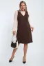 Создайте свой неповторимый образ с помощью универсального сарафана, к которому можно подобрать разнообразные блузки, водолазки, свитшоты. Сарафан прямого кроя, слегка притален, благодаря отрезному бочку, аккуратная V-образная горловина обработана обтачкой, в швах притачивания бочков имеются внутренние карманы. Пройма достаточно глубокая, чтобы не стеснять рукав блузки, длина до середины колена. Лаконичность деталей кроя подчеркивает стиль и элегантность изделия. Свободный крой сарафана и воздухопроницаемость ткани обеспечивают комфорт и свободу движения, что делает его идеальным для повседневного ношения. Модная геометрическая рельефная фактура ткани придает изделию стильный и современный образ. Базовые расцветки сарафана помогут с легкостью подобрать к нему пару. На работе, в офисе, на прогулке, на празднике вы будете чувствовать себя комфортно и уверенно. Рост модели на фото - 170 см.