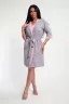 Костюм состоит из сорочки и халата. Халат на запах с карманами по бокам. Сорочка на широких бретелях с кокетливыми рюшами по низу изделия.