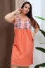 Сорочка женская прямого силуэта, без рукава. В верхняя часть сорочки из отделочной ткани, с рельефами, на планке три пуговицы. Для обеспечения достаточной свободы нижняя часть полочки со сборкой.