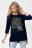Туника женская. На полочке принт. По низу изделия отделка – тесьма.