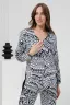 Женская туника-рубашка на пуговицах, без воротника, с V-образной горловиной спереди, с фигурной линией низа. Рукав длинный, низ собран на резинку.
