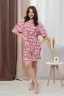 Туника в стиле "оверсайз". Прямая, свободная, длиной выше колена, с капюшоном. На капюшоне расположены "ушки". Рукав короткий. В нижней части боковых швов обработаны разрезы.