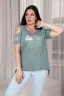 Туника прямого силуэта, вырез Y-образный. Полочка несколько короче спинки, сбоку разрезы. На полочке принт. Рукав не цельный, два хлястика, расположенные через расстояние друг от друга, втачаны в боковые части рукава.