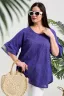 Туника женская, расширенная к низу. Горловина округлая. Рукав реглан, внизу рукава широкая рюша. Низ туники фигурный, в боковых швах внутренние карманы. Свободная, легкая, не стесняющая движений туника незаменима для летнего гардероба любой женщины.